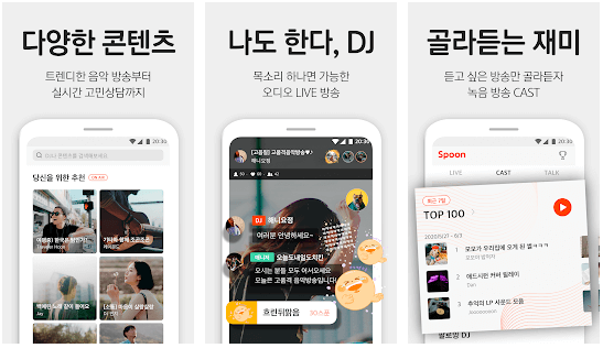 어플 내에서는 다양한 카테고리와 장르의 오디오 콘텐츠를 제공합니다. 음악, 팟캐스트, 라디오 프로그램, ASMR, 이야기 등 다양한 주제와 스타일의 오디오 콘텐츠를 즐길 수 있습니다. 또한, 어플에서는 실시간 라이브 방송을 통해 인기 있는 프로그램이나 특별한 이벤트를 청취할 수 있습니다.