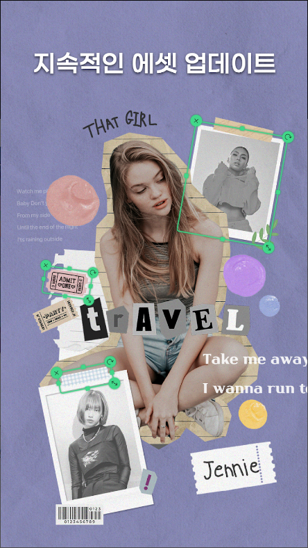 + 부분 설정으로 스티커와 텍스트를 원하는 대로 움직이게 할 수 있습니다.